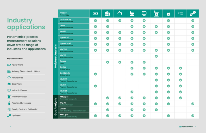 Käytettävien teknologioiden on oltava kestäviä, luotettavia ja kentällä testattuja. Panametricsilla on pitkä perinne ja kokemus kosteuden, hapen ja kaasujen analysoinnista käyttämällä erilaisia ydinteknologioita, kuten huokoista alumiinioksidia, laserin absorptiota, termoparamagneettista ilmiötä, elektrokemiallista reaktiota ja lämmönjohtavuutta.